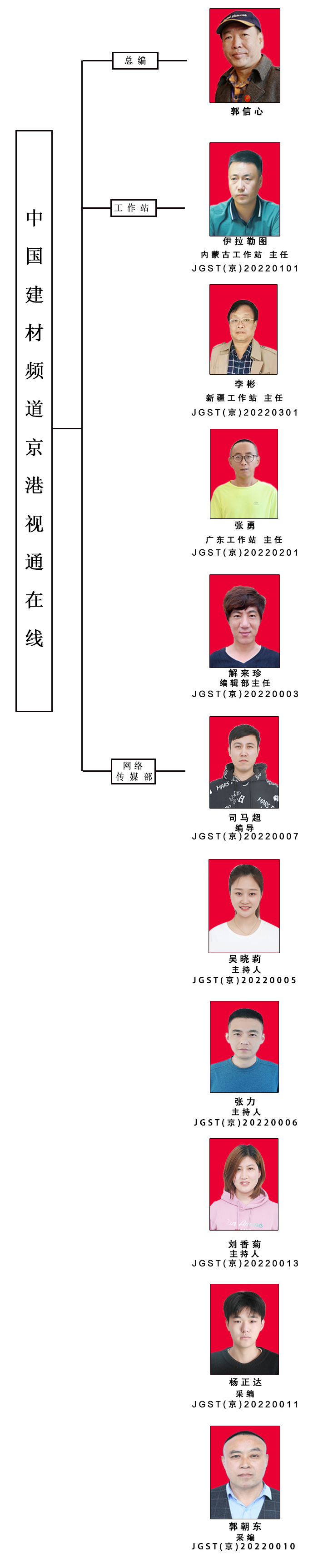 京港視通在線工作室位于中國建筑材料科學研究總院內,是京港視通傳媒(北京)有限公司的一個璀璨欄目,建材業動態、視頻(會議、展會)宣傳的展示平臺,內設有行業規范、行業新聞、名人訪談、名企之家等欄目。公司總監郭信心,著名編導、制片人,現任中國將帥文化論壇組委會副秘書長、自1985年從事影片制作工作,先后擔任《內心獨白》、《黑山路》、《綠色故事》《鳳凰簫》?!秲刃莫毎住?、《老大是咱媽》、《明天的日記》、《所有的事自己扛》、院線電影《韶華常春》、《守望》、《情之殤》?!断M姆较颉?、《楊柳村的姐妹們》、《探秘中國彩色寶石》《本草國學》等作品的導演、執行制片人工作,并策劃了農業部2009年廣西玉林《國際茶文化節》、中國國際青少年文化交流協會2010年《地質之光國際夏令營》、2012年全國人大批準的大型電影紀錄片《中華民族》、2013年中國少數民族文化教育專項基金《首屆全國少年兒童民族音樂舞蹈創新藝術節》、大型數字電影紀錄片《探秘中國彩色寶石》、大型數字電影紀錄片《本草國學》等作品。